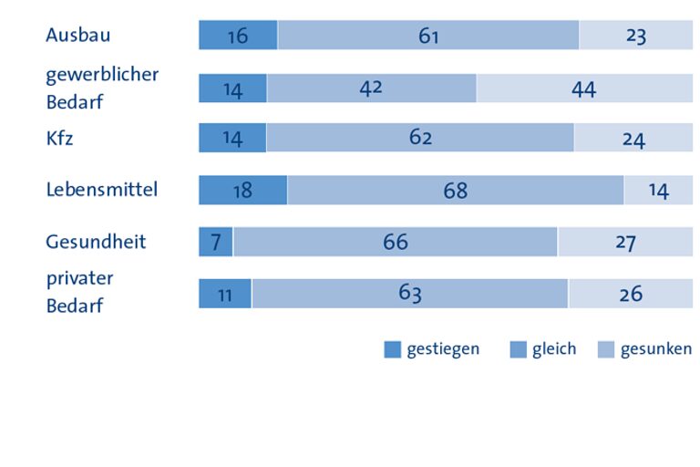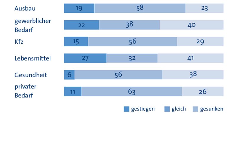 Dennoch geht seit Jahren die Zufriedenheit der Betriebe mit ihrer Geschäftslage kontinuierlich zurück. Aktuell besteht vor allem Unsicherheit, wie sich, einhergehend mit bereits rückläufigen Auftragspolstern, die weitere Nachfrage und damit die Zukunftsaussichten weiterentwickeln. Dabei leidet das Handwerk zum einen unter einem schwachen Konsum und einer schwächeren Nachfrage.